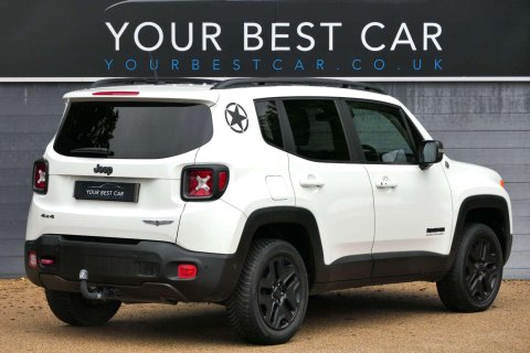 Your Best Car is thrilled to bring this Fantastic JEEP RENEGADE 2.0 Renegade Desert Hawk MultiJet 4x4 to market. Presented in Alpine White Metallic Paint and complemented by 17 inch Black "OFF ROAD" Alloy Wheels. The interior is comprised of Part Leather and Sedile Cloth with Desert Hawk Branding. Supplied with Heated Seats for Driver and Front Passenger, perfect for those cold mornings. This JEEP comes with an amazing FIXED Panoramic Sunroof with a sun blind. This Desert Hawk also includes, A Heated Leather Wrapped Multi-Function Steering Wheel, Infotainment Screen with Satellite Navigation, DAB Radio, Phone Connectivity, Front and Rear Parking Sensors, Cruise Control, Tow Bar, Dual Zone Climate Control, ISOFIX, and Selectrac II (Terrain Selector) just to mention a few. This Renegade is a truly special vehicle with lots of character, which also stands out from the crowd. The previous owner always made sure this special example was serviced by JEEP Main Dealers its entire life! Fitted with Rubber mats from the day it left the factory, you can tell this example has been cared for. This Renegades Service History is as follows; Firstly 25/04/2018 at 8,607 miles, 17/04/2019 at 19,052, 14/05/2021 at 34,094, 11/05/2022 at 38,707 miles, 09/05/2023 at 45,787 miles and Most Recently 17/04/2024 at 49,404 miles. Supplied with a Fresh MOT that passed IN MAY 2024. This vehicle has a 9-speed AUTOMATIC gearbox and a 2.0-litre Euro 6/ ULEZ Compliant DIESEL engine producing an astonishing 170 BHP. This vehicle was Mechanically Inspected at our Preparation Centre and was prepared by our AutoGlym-trained valeting team. This lovely example has a complete HPI CLEAR History Check with a certificate for your records. We are a platinum-approved Black Horse finance provider, so please call us for an INSTANT quotation. YBC was established 12 years ago - we are a proud 5/5 highly rated dealership with nearly 1,000 reviews within our dealer group so you will have a great experience with us. All part exchanges are welcome!
